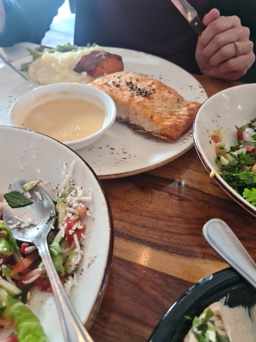 Food was good , location is also good . It’s in the old town and made with old stonewall . Prices can be on little higher side . Specially when you only have one kind of wine and the glass is $20.00 . But all in all one can try . I really liked the Arabic cheese though .